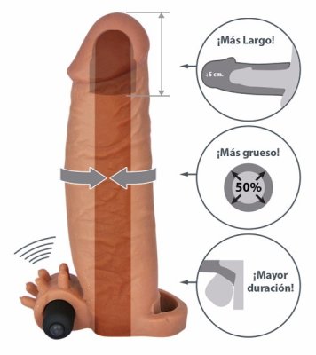 Funda extensora y estimulador de clítoris. Con ésta funda puedes llevar a tú pareja al placer extremo proporcionando la velocidad de vibración.